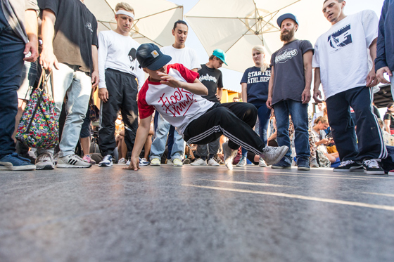 © Иван Гущин — О, русские би-бои очень сильны, — заверила меня конкурсантка из Швеции, представившаяся как Public Emily, симпатичная брюнетка в панаме и с длинной косой, — они очень атлетичны, делают сложные трюки. А еще гостеприимные и дружелюбные ребята, судя по тому, как нас тут принимают.