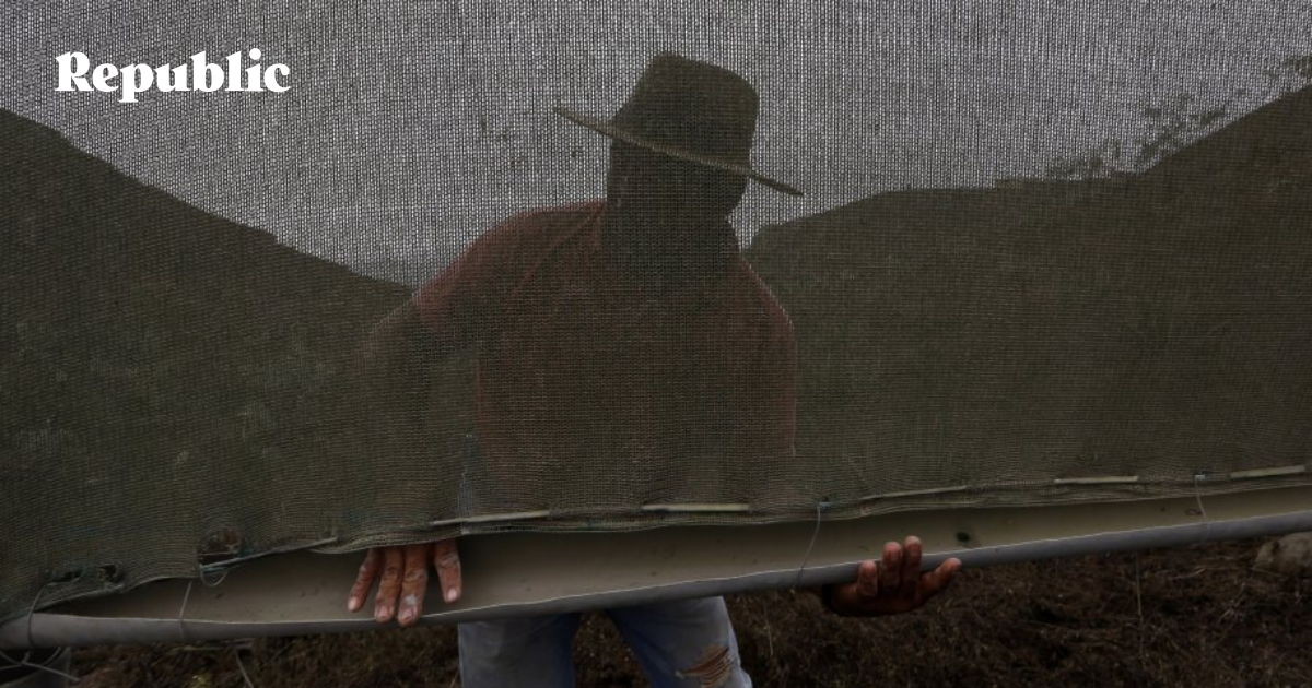 Фермер в Лиме устанавливает сеть, которая сохраняет влагу из тумана. Фото: Mariana Bazo / Reuters