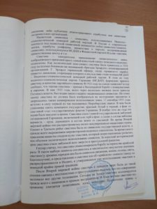 Рассмотрение дела об административном правонарушении по ст. 20.3 КоАП РФ (Пропаганда либо публичное демонстрирование нацистской атрибутики или символики, либо атрибутики или символики экстремистских организаций, либо иных атрибутики или символики, пропаганда либо публичное демонстрирование которых запрещены федеральными законами) стартовало 9 августа и закончилось в райсуде сегодня.