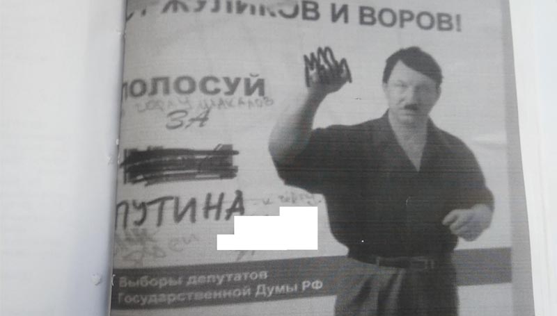 Полиция настаивала на том, что юрист штаба Навального во Владимире, якобы, разместил на странице “ВКонтакте” в 2012 году испорченный предвыборный плакат коммуниста Валерия Рашкина. На нём, в частности, присутствовали две разнонаправленные свастики.