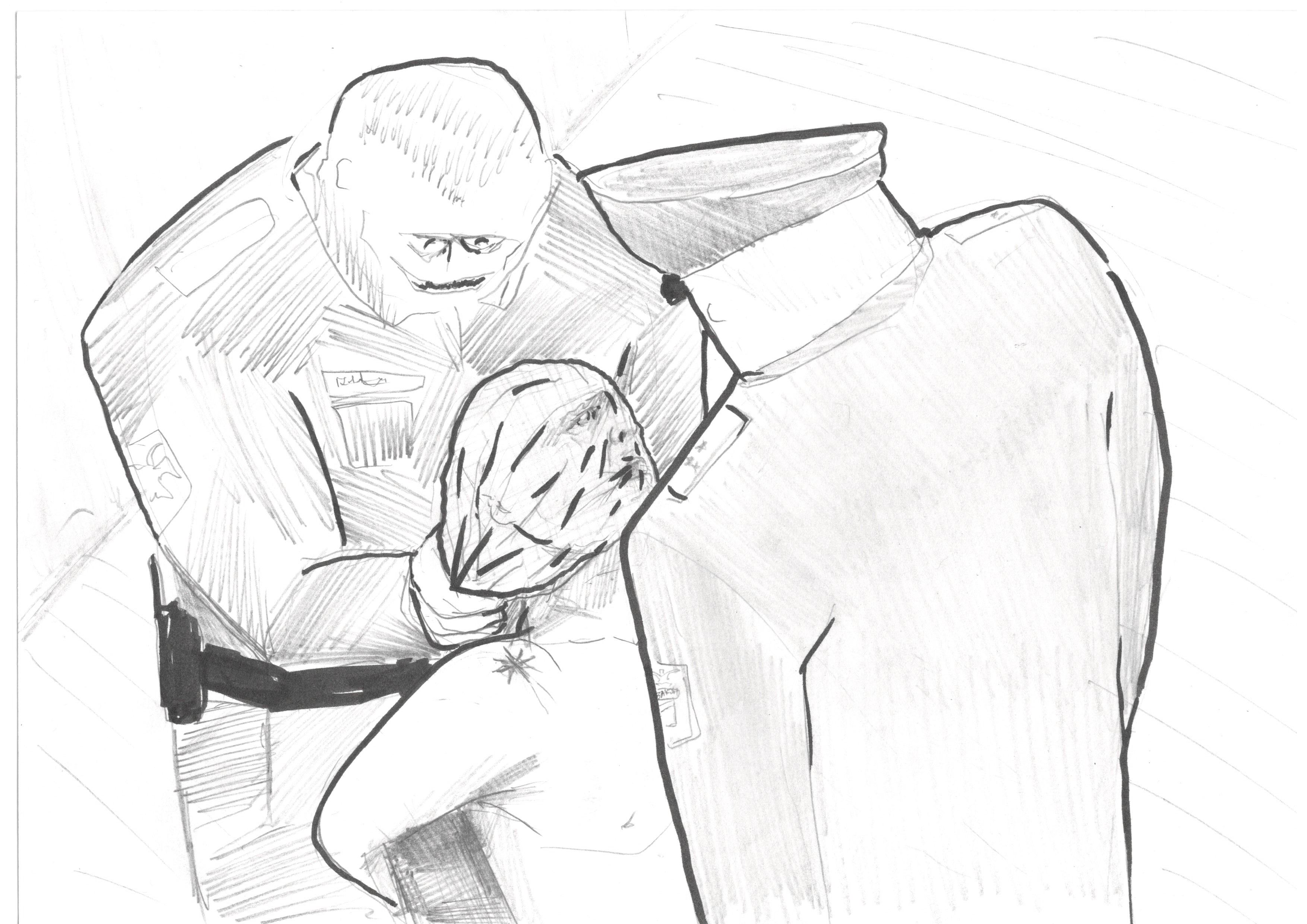 Он отдал приказ продолжить пытку. В этот раз ток держали дольше. Я сильно кричал, от крика у меня заболело горло. В перерыве между ударами я спросил, зачем они это делают, но мне никто не ответил. Когда меня били током, говорить я не мог, только кричать, я звал следователя, Максима Петровича Ведяева. С каждым новым ударом было все больнее и больнее. У меня спросили: „Почему на суде ты говоришь, что невиновен? Ты виновен! Ты знаешь, что прошло всего 6 минут? Мы можем тебя здесь держать два дня“.