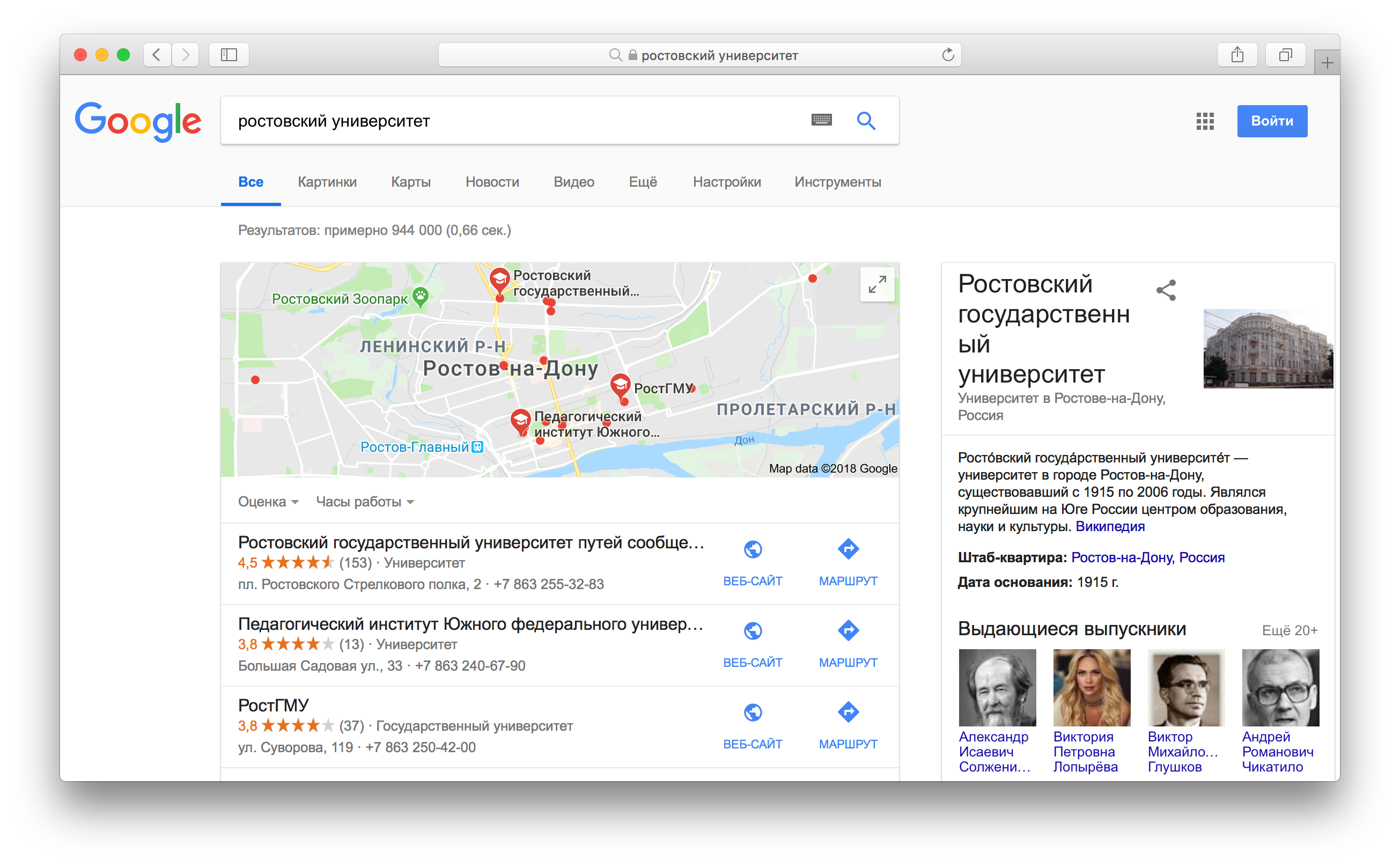 Руководство Южного федерального университета (ЮФУ), созданного на базе Ростовского государственного университета, направило обращение в Google с просьбой убрать серийного убийцу Андрея Чикатило из списка выдающихся выпускников этого вуза, который показывается на главной странице в поисковой выдаче.