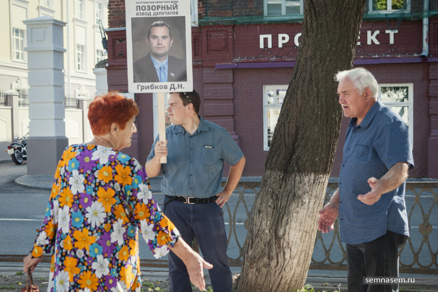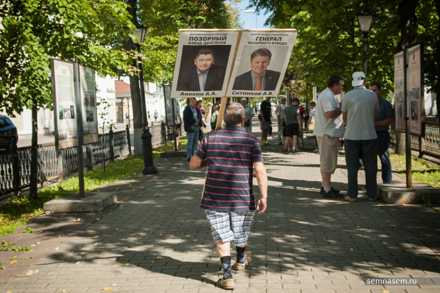 Сторонники национально-патриотических идей 25 августа провели в центре Костромы серию пикетов с портретами депутатов областной думы, поддержавших пенсионную реформу, и устроили сбор подписей за признание партии «Единая Россия» экстремистской организацией. Как проходила акция — в репортаже «7х7».