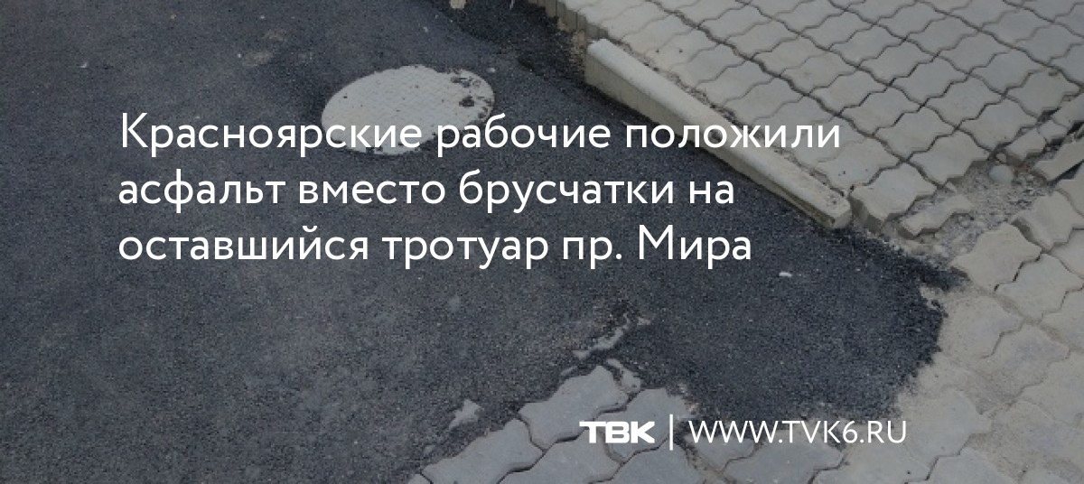 Красноярские рабочие положили асфальт вместо брусчатки на оставшийся тротуар пр. Мира