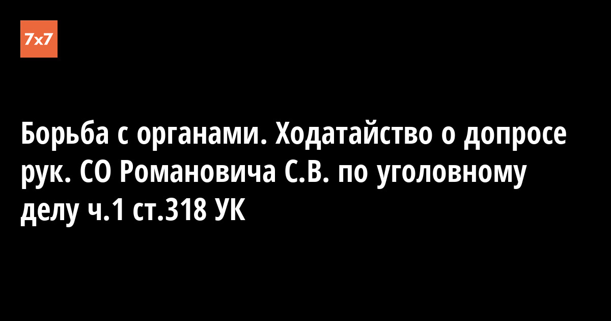 Борьба с органами. Ходатайство о допросе рук. СО Романовича С.В. по уголовному делу ч.1 ст.318 УК