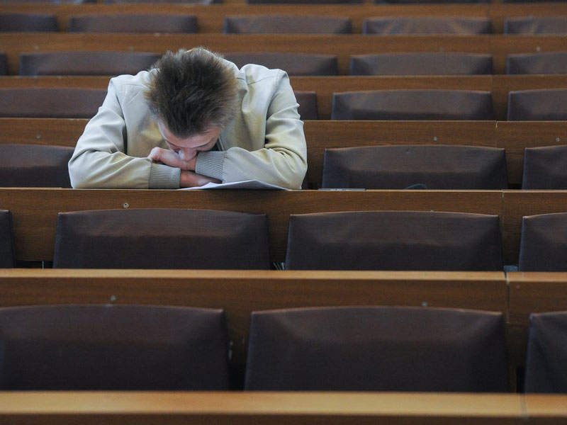 Зимняя сессия в МГУ / АГН "Москва" / фото: Любимов Андрей Пока еще в вузы идет достаточно много народу, но их доля отчетливо сокращается. Если раньше из общего числа поступавших в первый класс в вузы шли примерно 55%, то теперь – примерно 48%. Да, некоторые из тех, кто идет в колледжи, потом поступают в вузы – совершают такой обходной маневр, чтобы не сдавать ЕГЭ. Но по большому счету уже не столько дети хотят идти в высшие учебные заведения, сколько родители все еще хотят, чтобы они шли. 89% родителей считают получение высшего образования обязательным для своих детей.
