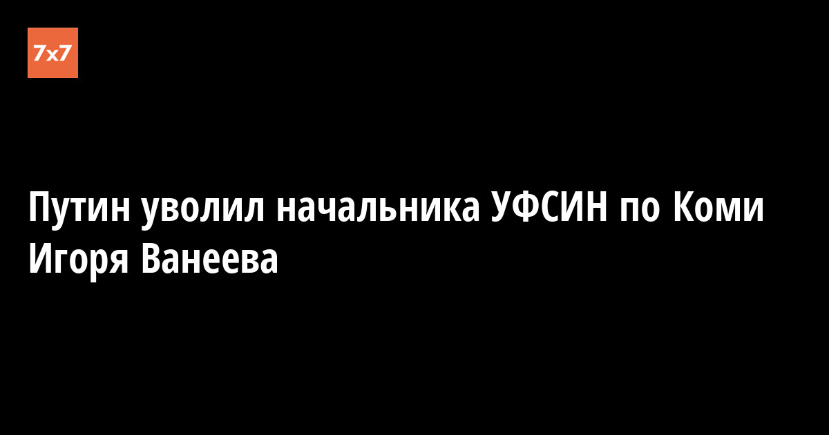 Владимир Путин освободил от занимаемой должности начальника управления Федеральной службы исполнения наказания (ФСИН) по Коми Игоря Ванеева. Соответствующий приказ опубликован на портале правовой информации 28 августа.