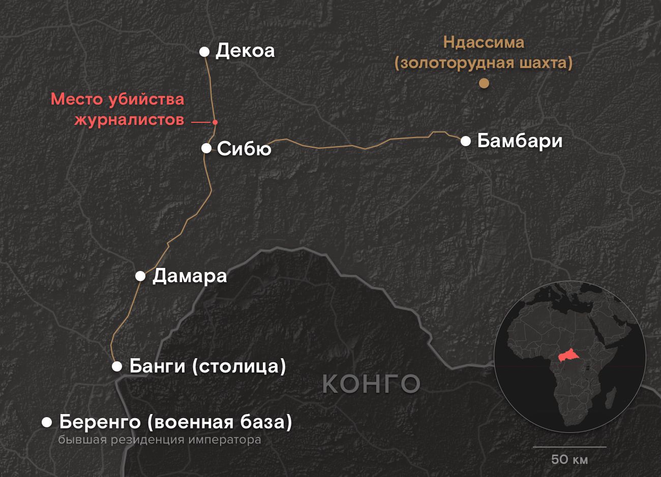 — Все эти две недели мы просили поездку в Бамбари [где Джемаля, Радченко и Расторгуева должен был встретить Мартин], но нам сказали, что ехать туда смертельно опасно, поскольку город не контролируется правительственной армией. Самостоятельно я туда не поеду, учитывая опыт коллег, не хочется рисковать. У нас есть номер Мартина — он не отвечает, в его [поисках] мы никак не продвинулись.