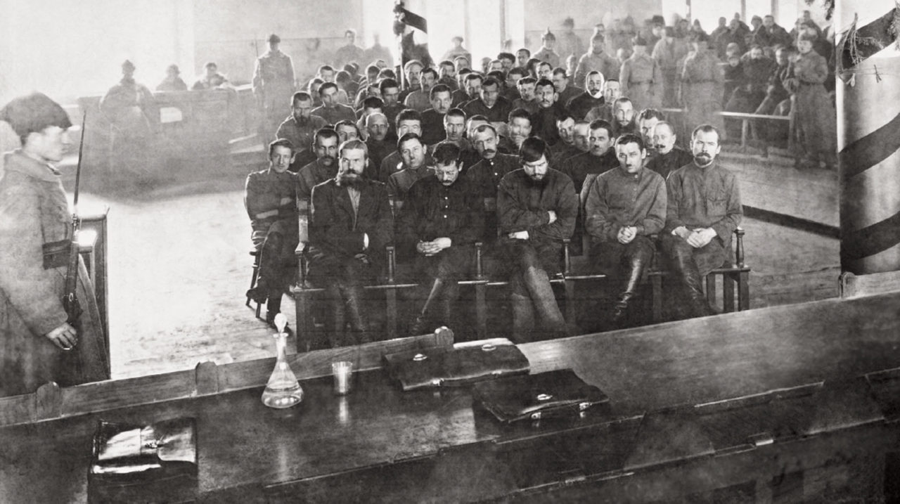 Анатолий Пепеляев (в первом ряду в центре) на судебном заседании в Чите (январь 1924 г.)Фото: Wikimedia Commons