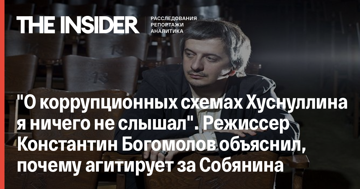 "О коррупционных схемах Хуснуллина я ничего не слышал". Режиссер Константин Богомолов объяснил, почему агитирует за Собянина
