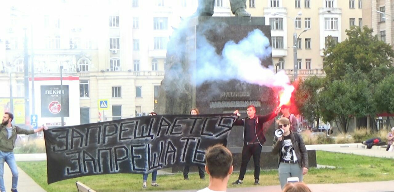 В Москве на Триумфальной площади задержаны активисты «Другой России», развернувшие баннер с лозунгом «Запрещается запрещать», сообщается в телеграм-канале организации.