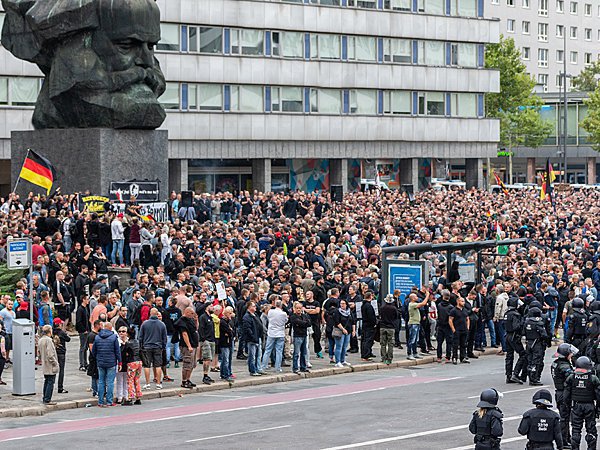В Хемнице 30 августа возобновились протесты против иммиграционной политики правительства — после того, как убийство местного жителя вызвало волну ультраправых настроений, пишет The Wall Street Journal. 26 августа протесты были организованы почти сразу после убийства. Через день число протестующих возросло, начались столкновения с полицией.