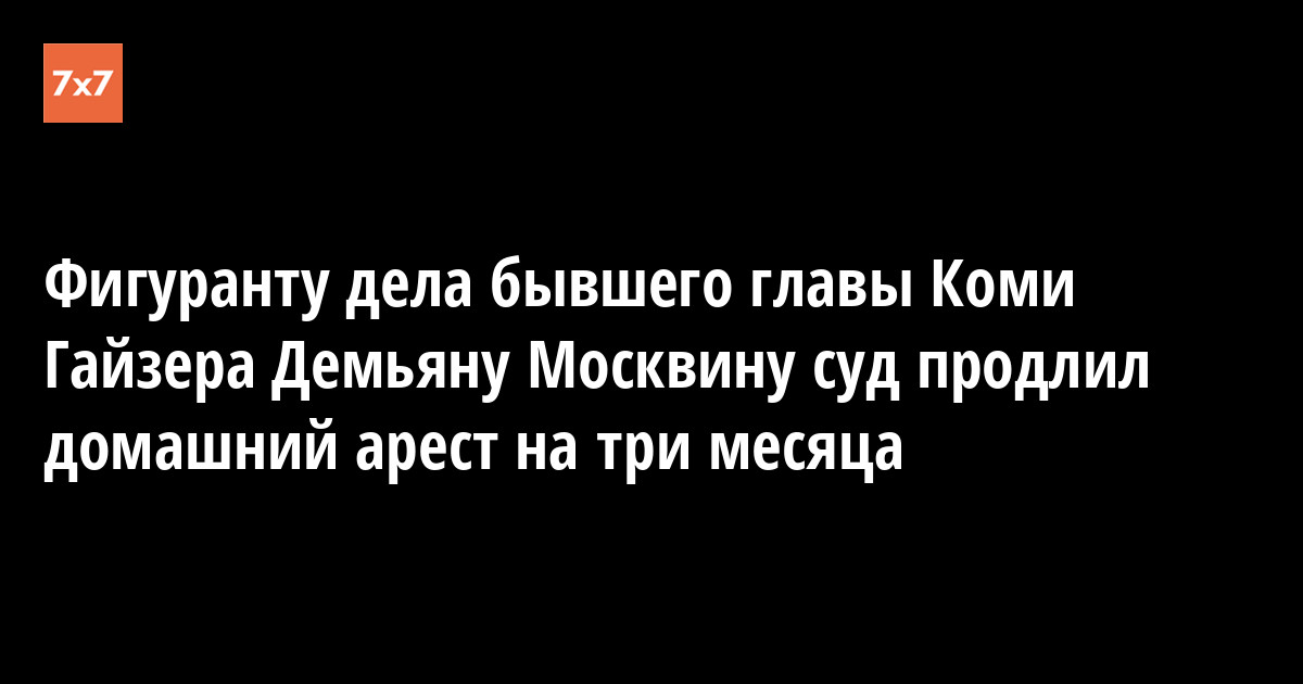 Замоскворецкий суд Москвы оставил под домашним арестом Демьяна Москвина — фигуранта дела бывшего главы Коми Вячеслава Гайзера и управляющего офшорами бизнесмена Александра Зарубина, которого следствие считает организатором преступного сообщества в руководстве республики. Об этом 31 августа сообщил корреспондент «7x7» из зала суда.