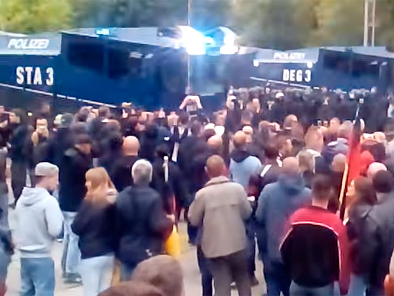 "Полиция задержала около 300 человек. По всей видимости, они пытались внедриться в группу сторонников партии "Альтернатива для Германии". Полиция предотвратила столкновение различных групп", - говорится в сообщении. Отмечается, что в ходе протестов произошли многочисленные столкновения с полицией.