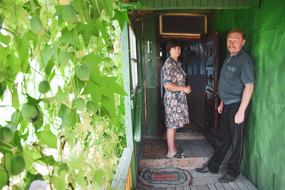 Татьяна и Сергей Штейниковы дома. В случае повышения пенсионного возраста Татьяна уйдет на пенсию в 2022, а Сергей – в 2024. Фото: Дарья Гришанова Татьяна работает в убойном цехе «Межениновки» «на учете».