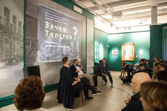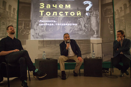 15 августа 2018 года по инициативе Государственного музея Л.Н. Толстого и музея-усадьбы Л.Н. Толстого «Ясная Поляна» в Российской государственной библиотеке состоялась публичная дискуссия «Зачем Толстой? Личность, свобода, государство», в которой приняли участие историк литературы, профессор Оксфордского университета Андрей Зорин и социолог, профессор Московской высшей школы социальных и экономических наук Григорий Юдин. Модерировал разговор Александр Гаврилов.