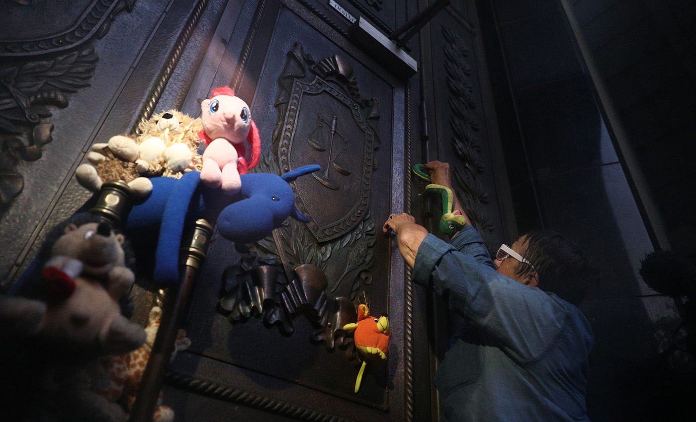 Детские игрушки около здания Верховного суда во время «марша матерей» в поддержку фигурантов дела «Нового величия», 15 августа 2018 года. Фото: Андрей Любимов / RBC / ТАСС