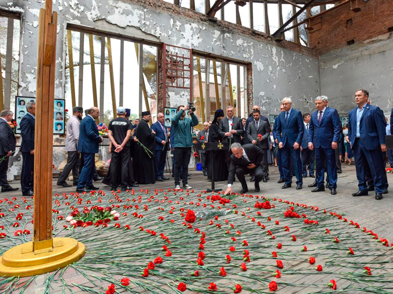 Утром в школе прошла литургия в память жертв. В 13:05 по Москве раздались два удара колокола, символизирующие два первых взрыва в спортзале. Затем была объявлена минута молчания, во время которой в полной тишине школьники выпустили в небо шары. После этого начался крестный ход от школы до мемориального кладбища "Город ангелов", где похоронены жертвы теракта.