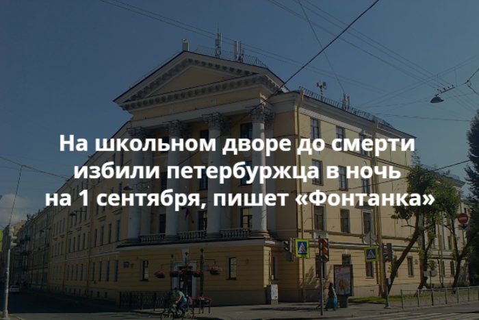 Как пишет издание, тело петербуржца нашли с травмой головы во дворе учебного заведения на набережной канала Грибоедова в ночь на 1 сентября. Полицию вызвали местные жители.