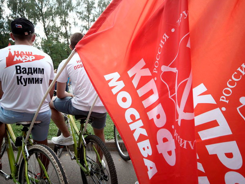 Антикапиталистический велопробег в поддержку Вадима Кумина / АГН "Москва" / фото: Ведяшкин Сергей Проведенный 28-30 августа опрос ВЦИОМ предсказывает, что за Собянина отдадут свои голоса 69,4% москвичей, что на 4 п.п. больше, чем за три недели до этого. Прогнозный результат кандидата от КПРФ Вадима Кумина вырос с 10,1 до 13,2%. Одновременно падает прогнозируемые результаты у Михаила Дегтярева от ЛДПР (с 11,1 до 7,8%), справоросса Ильи Свиридова (с 7,1 до 6,5%) и кандидата от «Союза горожан» Михаила Балакина (с 4,3 до 1,4%). Иными словами, согласно данным ВЦИОМ, несмотря на слабость агитации кандидатов за последние месяцы все-таки сменился главный претендент на второе место: в условиях отсутствия кандидатов от либеральных партий им стал представитель КПРФ. Так что неожиданностей не предвидится — если, конечно, Вадиму Кумину не удастся доказать в Мосгорсуде, что кандидатуру Сергея Собянина необходимо снять с выборов.