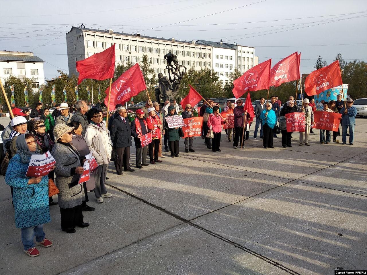 В центре Якутска прошел согласованный митинг против пенсионной реформы, участие в котором приняло порядка 100 человек. Организатором мероприятия стало региональное отделение КПРФ. Его лидер Виктор Губарев потребовал отставки Правительства РФ. Участники протестной акции держали в руках плакаты с лозунгами: "Пенсионная реформа – ограбление трудящихся", "Нет доверия местным властям", "Нет повышению пенсионного возраста" и другие.