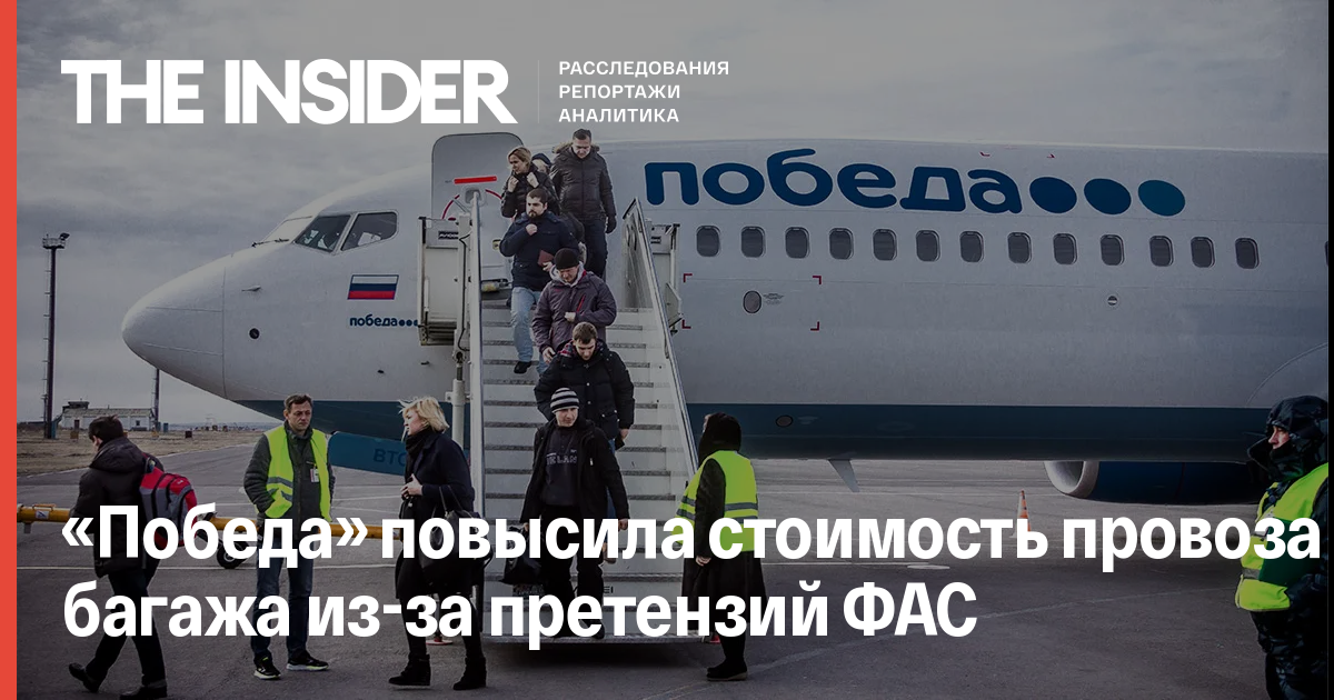 Авиакомпания «Победа» с 4 сентября повысит с 499 до 777 рублей минимальный тариф провоза багажа до 10 килограммов. Как сообщает ТАСС, в «Победе» заявили, что «вынуждены» повысить цены из-за ФАС, потребовавшей, чтобы каждый пассажир в рамках одного бронирования мог оформить багаж по единому тарифу.