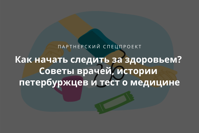 Врачи и эксперты объясняют, какие обследования стоит проходить регулярно людям разного возраста и к чему может привести недостаток витамина D у жителей Петербурга. Основатель 123apps.com и pdf.io Михаил Кашафутдинов рассказывает, как после проблем со здоровьем отказался от кофе, изменил диету и стал сдавать десятки анализов. Экспаты из Германии, Великобритании и Румынии вспоминают, как в первые столкнулись с российской медициной и что подумали о местных клиниках и врачах. Кроме того, в материалах проекта смотрите тест о том, какие медицинские услуги можно получить в России бесплатно.