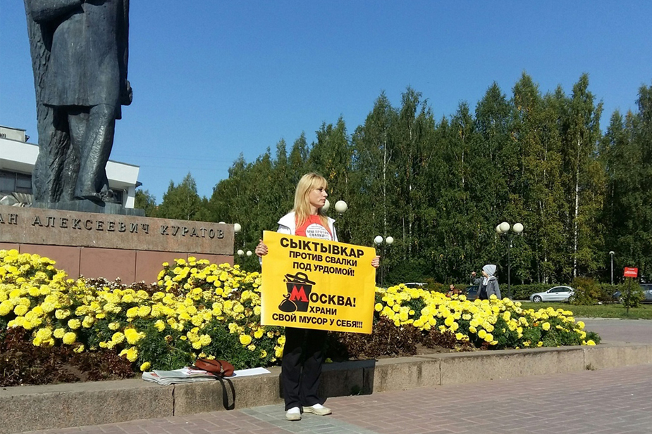Сыктывкарская активистка Елена Майле 4 сентября на Театральной площади провела одиночный пикет против строительства полигона для московского мусора под Урдомой в Архангельской области. Об этом она рассказала «7х7».