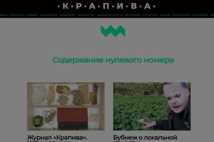 В Петербурге запустили онлайн-издание о современном искусстве «К.Р.А.П.И.В.А». Аббревиатура расшифровывается как «культура, ревью, аналитика, Петербург, искусство, вовлеченность и активизм».