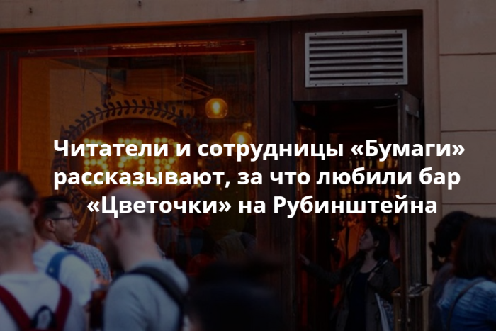 Читатели и сотрудники «Бумаги» рассказывают, как впервые побывали в «Цветочках», за что полюбили барменов заведения, как бесплатно выпивали там благодаря акции на «Форсквере» и из-за чего в баре было ощущение, что заглядываешь в гости к приятелям.