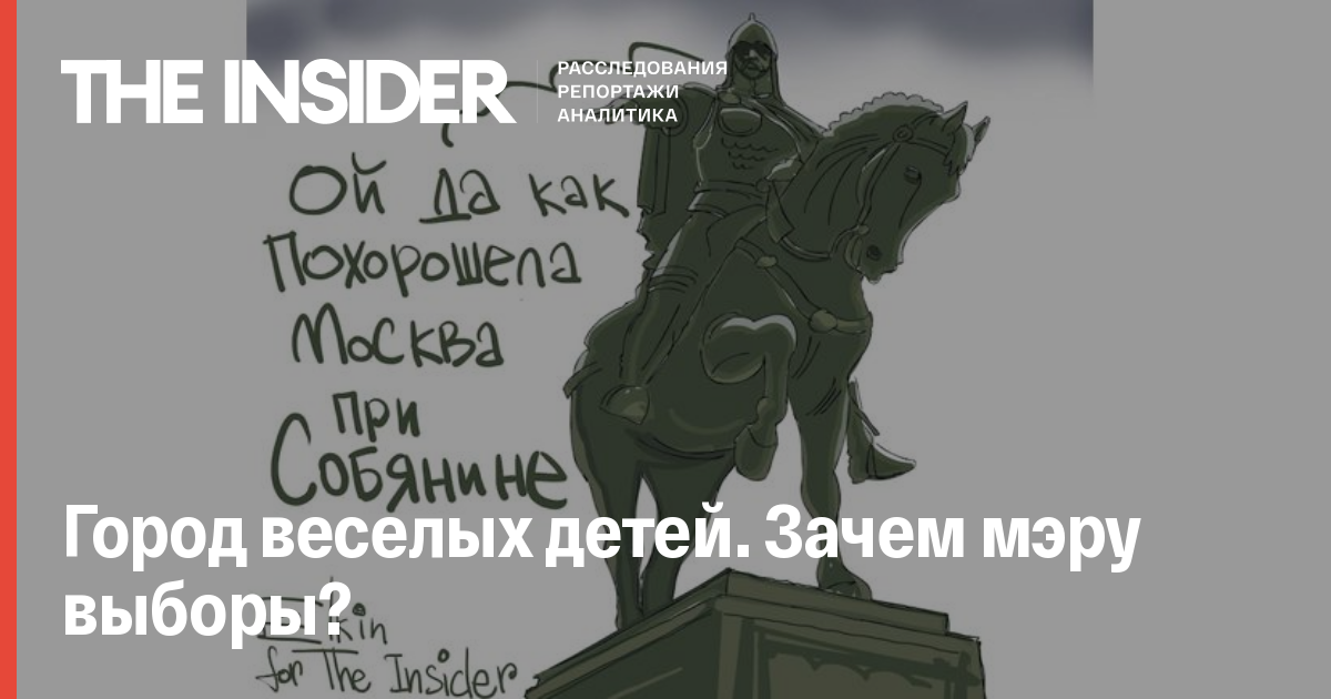 Привычный начальник, Сергей Собянин, пошел на выборы, чтобы конкурировать с людьми совершенно городу неведомыми. Системные партии выставили кандидатов, у которых нет шансов не провалиться с треском. Несистемная оппозиция, у которой, впрочем, в этот раз и не было сравнимого по силе с Навальным политика, провалилась самостоятельно — будем честными, об этом нельзя не упомянуть. Интрига, не родившись, умерла, и даже в мэрии не все сотрудники, причастные к организации голосования, знали, с кем именно всенародно любимому мэру предстоит бороться.