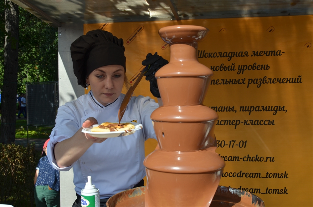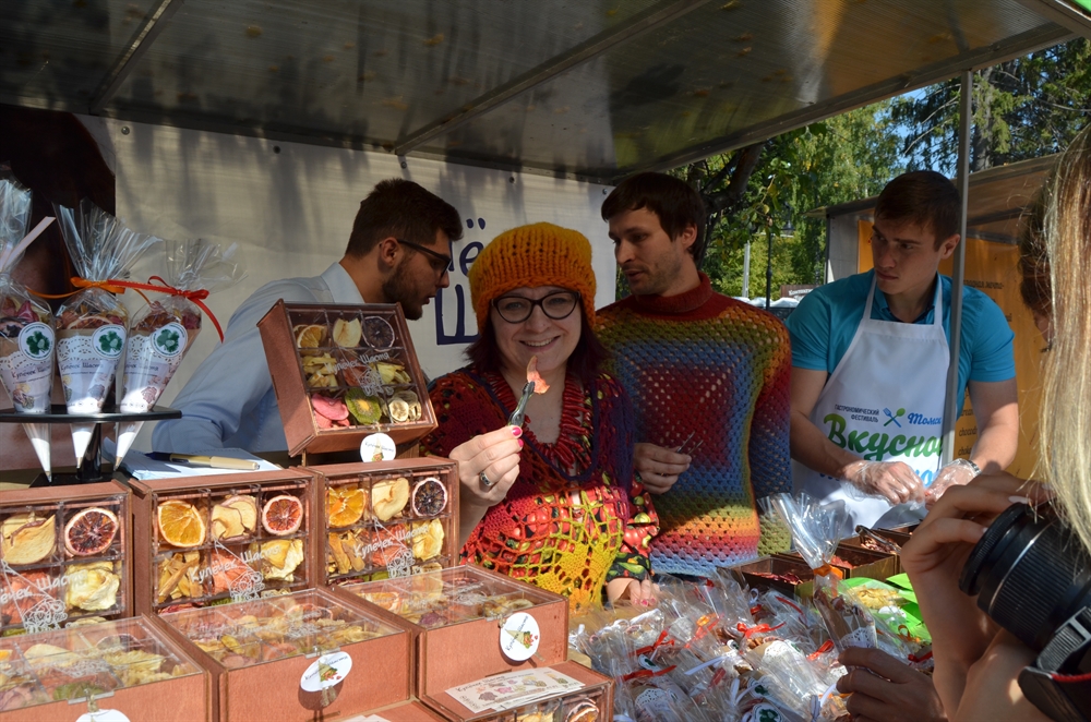 Фотозоны, фудкорты на любой вкус, лавочки с продуктами от ведущих томских производителей, а так же дегустации: одни из участников мероприятия «Кулёчек Щастя» представили гастрономическую новинку – «чипсоки», кусочки сушёных фруктов и ягод, вымоченные во фруктовом соке. Попробовать это блюдо мог любой желающий.