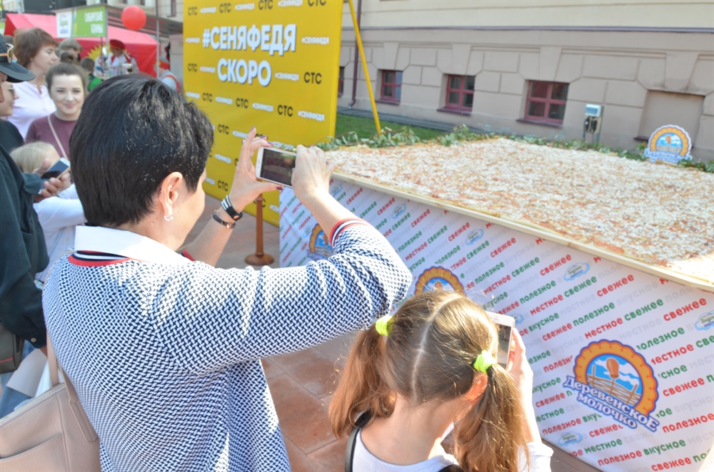 Автор: Арина Присяжная «Деревенское молочко» представила зрителям огромную пиццу «Четыре сыра» площадью в несколько квадратных метров. Так же они запустили акцию: пластиковые стаканчики и бутылки в обмен на продукцию.