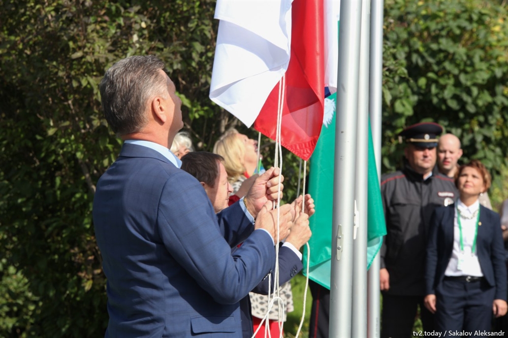 После этого были подняты флаги, и прозвучала новая песня о Томске, которую специально к этому дню написали Степан Пономарев и Анастасия Артеменко.