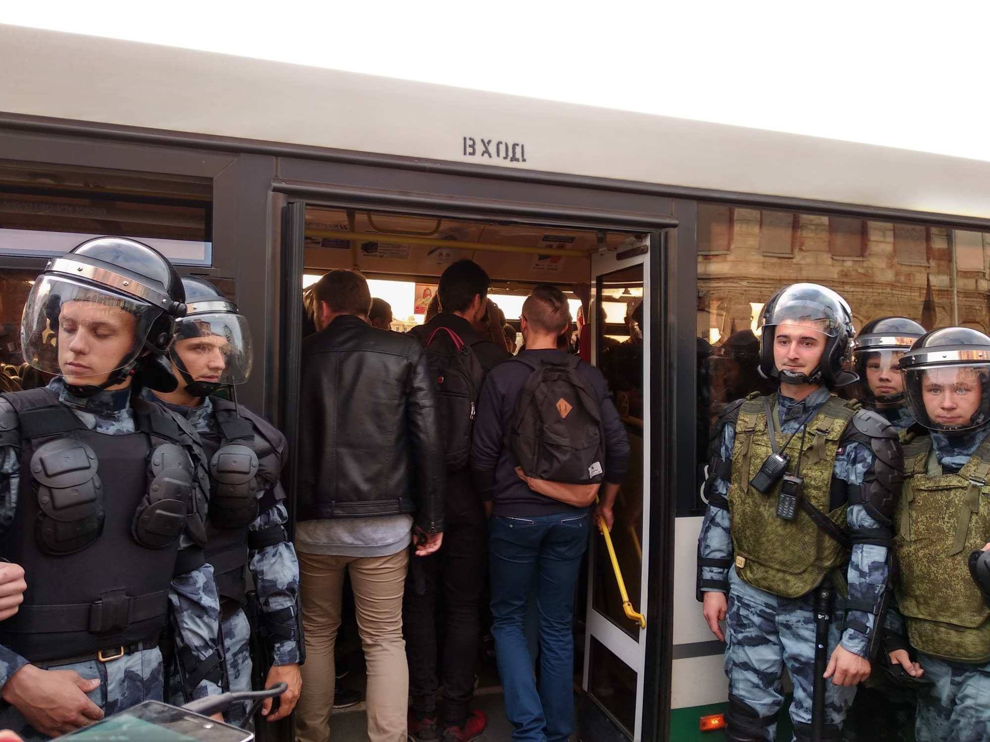«Устроим им обзорную экскурсию по городу», — пошутил один из полицейских, наблюдающих, как участники акции протеста в Питере заходят в пригнанные автобусы.