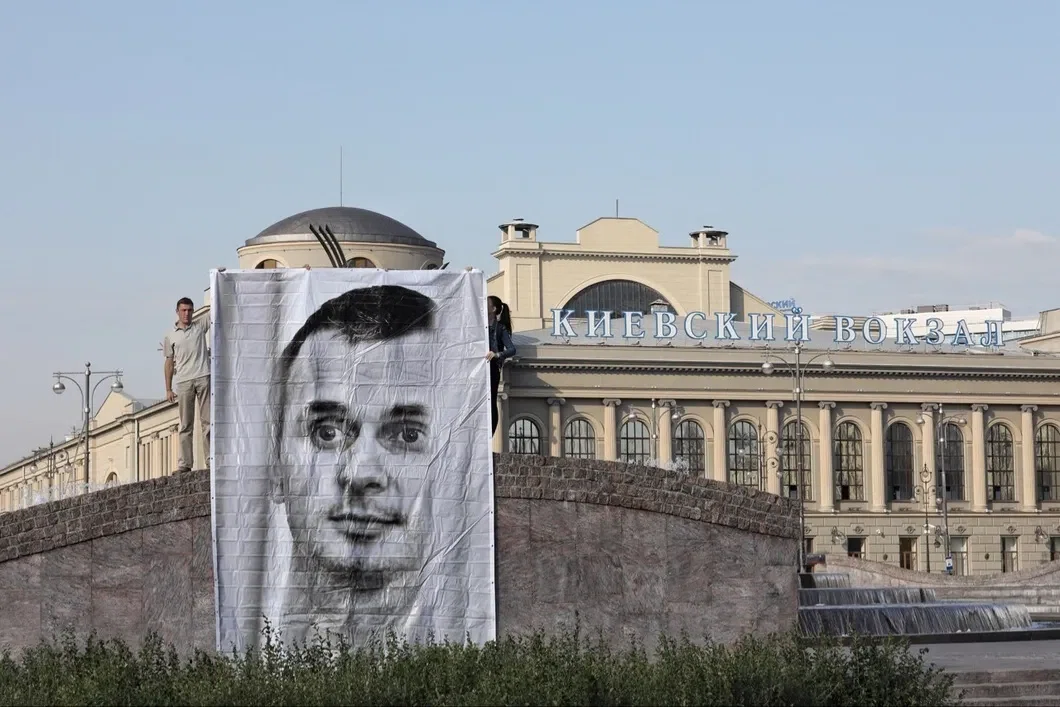 В пятницу в Москве активисты растянули баннер в поддержку Сенцова на Площади Европы, недалеко от Киевского вокзала.