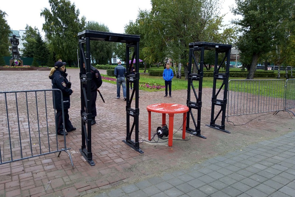 14:07 В Барнауле полиция принесла металлоискатели на главный вход площади Свободы. Напомним, что алтайская акция протеста сторонников Навального не получила одобрения муниципалитета. А рамки, очевидно, чтобы вязать было удобней.