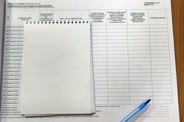 09:49 В Барнауле на УИК №214 в списках избирателей обнаружена пометка карандашом, сообщается на «Карте нарушений».