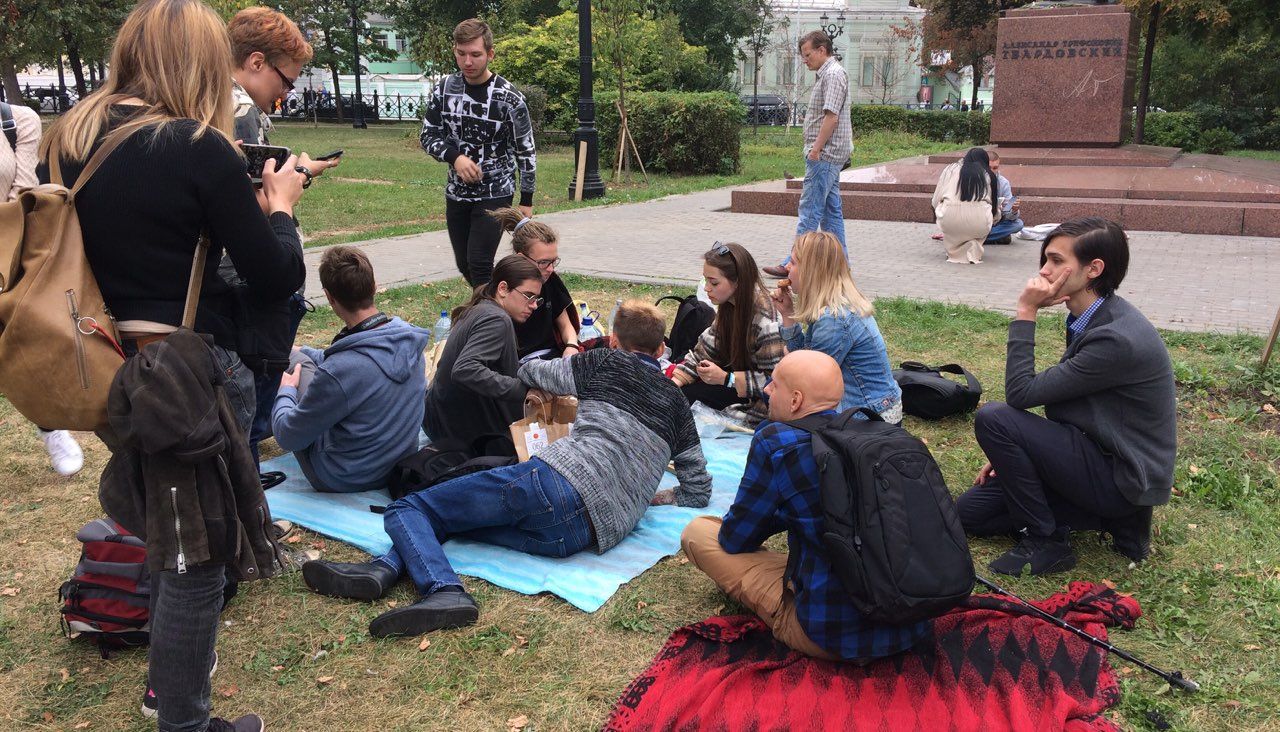 После разгона акции против пенсионной реформы в Москве 9 сентября несколько молодых людей решили вернуться на Пушкинскую площадь и устроить там бессрочный митинг. В полночь к памятнику Пушкина прибыли сотрудники Росгвардии, которые задержали часть участников «бессрочной акции»; остальные — их было 15 человек — переместились к памятнику Твардовского на Страстном бульваре. Активисты всю ночь вели трансляцию в инстаграме, призывая присоединиться к акции всех неравнодушных. Утром к ним пришли полицейские с требованием убрать плакаты; протестующие подчинились. В час дня к ним снова подошли полицейские и попросили рассредоточиться по скверу, потому что «неподалеку сидит начальник ОВД». Еще через полтора часа их все-таки задержали. На бульваре начали собираться сторонники активистов — и около пяти вечера там задержали еще восемь человек. «Медуза» успела поговорить с организаторами «бессрочной акции» еще до того, как они попали в отделение.