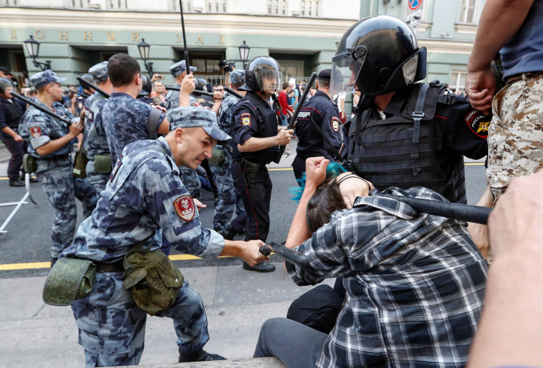 Во время митинга против пенсионной реформы в Москве. Фото: Sergei Karpukhin / Reuters