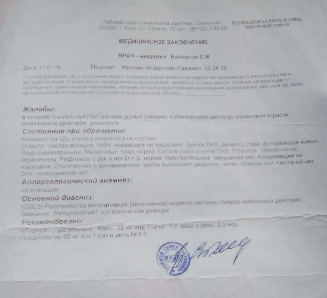 Медицинское заключение Владислава ЖелнинаФото: Галина Титаренко В первый раз в полиции Влад оказался в 14 лет — убежал из дома. В 16 лет сообщил о минировании соседнего дома (тогда семья жила в Воронеже). Побеги повторялись, мать объявляла его в розыск, а полиция задерживала. Во время одного из таких задержаний Владиславу сломали ногу — по мнению врачей, преднамеренно. Олеся писала жалобы на действия полицейских, сам Влад тоже пожаловался, написав в приемную министра внутренних дел Владимира Колокольцева. Тогда-то ему и начали мстить воронежские полицейские, а именно — начальник отдела полиции Коминтерновского района, считает Олеся. То, что происходит с сыном сейчас, — продолжение начавшейся в Воронеже истории, уверена она.