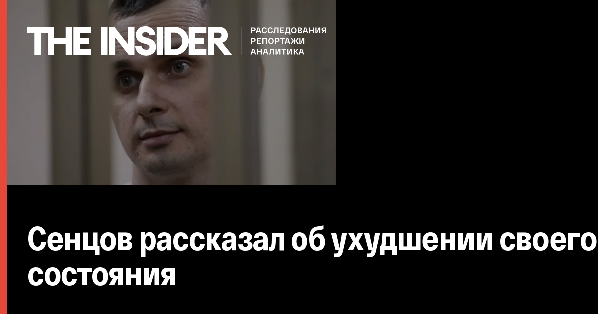 «Состояние у меня примерно такое же: стабильно-хреновое, ко всем старым спецэффектам теперь еще добавилась гипоксия — это нехватка кислорода в органах, в основном сердце и мозге. Туман в голове, все кружится, тело, голова и конечности немеют», — написал Сенцов.