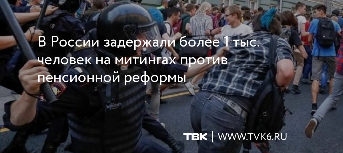 В России задержали более 1 тыс. человек на митингах против пенсионной реформы