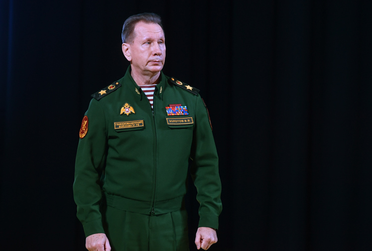 Но это происходит на самом деле. Человек в кадре — генерал армии Виктор Золотов, который много лет возглавлял Службу безопасности президента, а в 2016 году был назначен директором новой военизированной силовой структуры государства — Федеральной службы войск национальной гвардии Российской Федерации (Росгвардии), на которую возложены задачи охраны общественного порядка, обеспечения общественной безопасности, территориальной целостности и обороны страны.