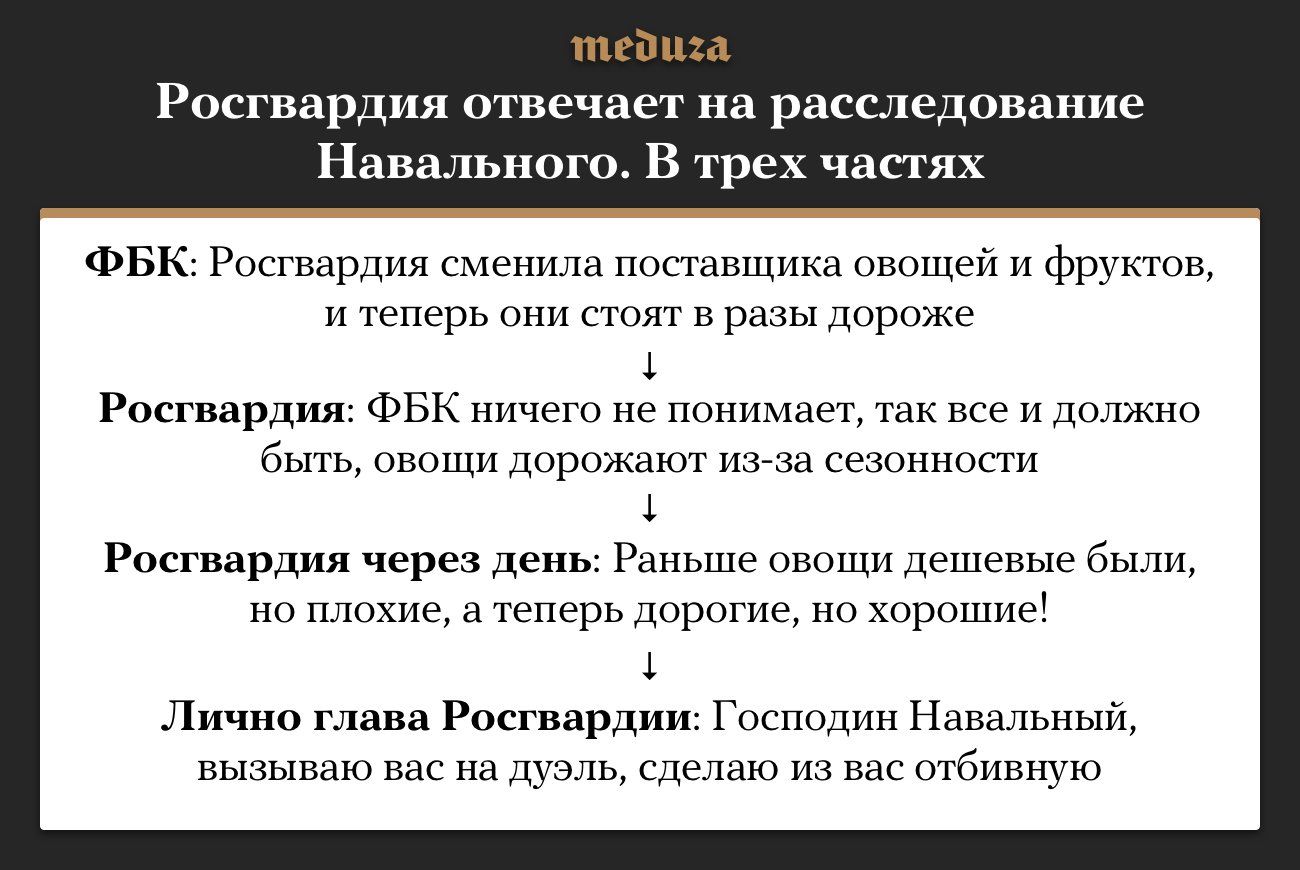 Глава Росгвардии Виктор Золотов наконец нашел что сказать по поводу расследования ФБК о коррупции в ведомстве и выбрал для этого модный нынче формат видеообращения. В семиминутном ролике он сначала излагает аргументы (да я ударником труда был, когда вы на горшок ходили!), но под конец, видимо поняв, что их немного, вызвал Навального на «дуэль» и пообещал сделать из него отбивную. Лучшие цитаты из ролика мы собрали здесь.