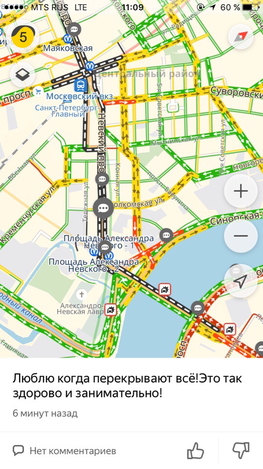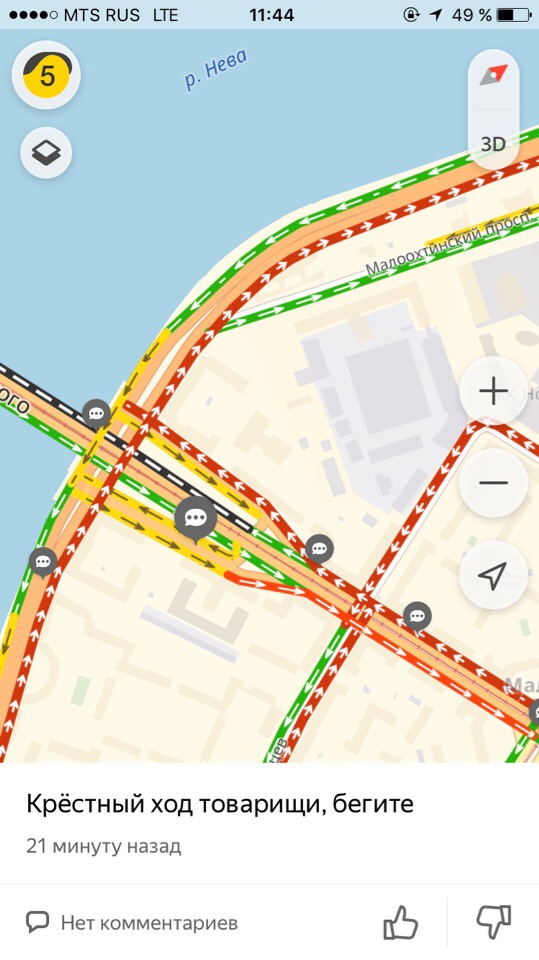 Центр Петербурга всё утро стоял в пробках из-за крестного хода. Перекрывали Невский проспект и еще несколько улиц в центре города. Кроме того, без предупреждения закрыли мост Александра Невского, из-за чего жители Охты не могли выехать в центр.
