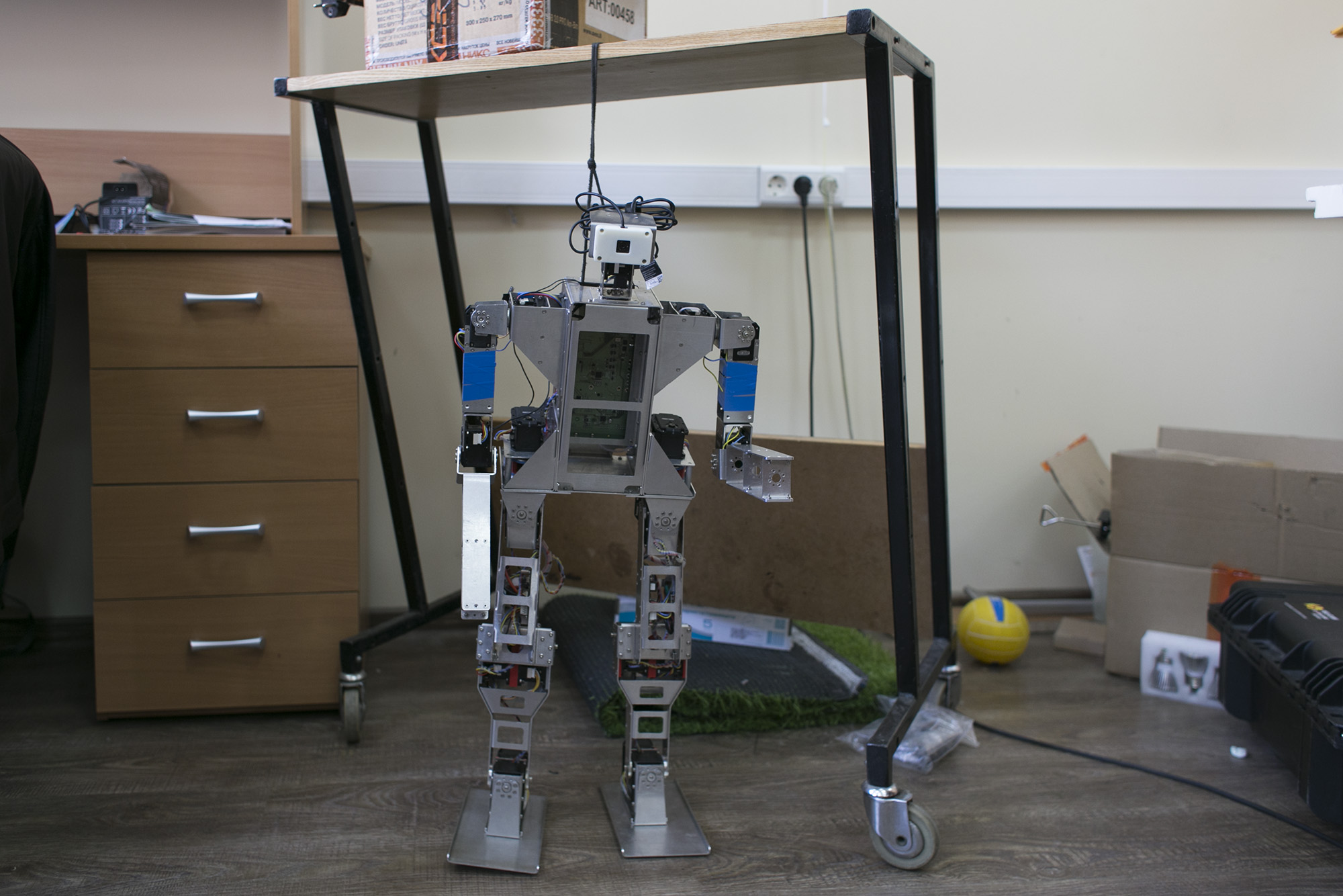Второй значимый проект — робот «Антарес» со множеством составных частей. Мы работали с большим количеством антропоморфных мелких роботов-футболистов (среди них — робот DARwIn от корейской компании Robotics — прим. «Бумаги»), и стараемся исправить в своем прототипе все недостатки чужих платформ — механики конструкции, электроники, программного обеспечения.