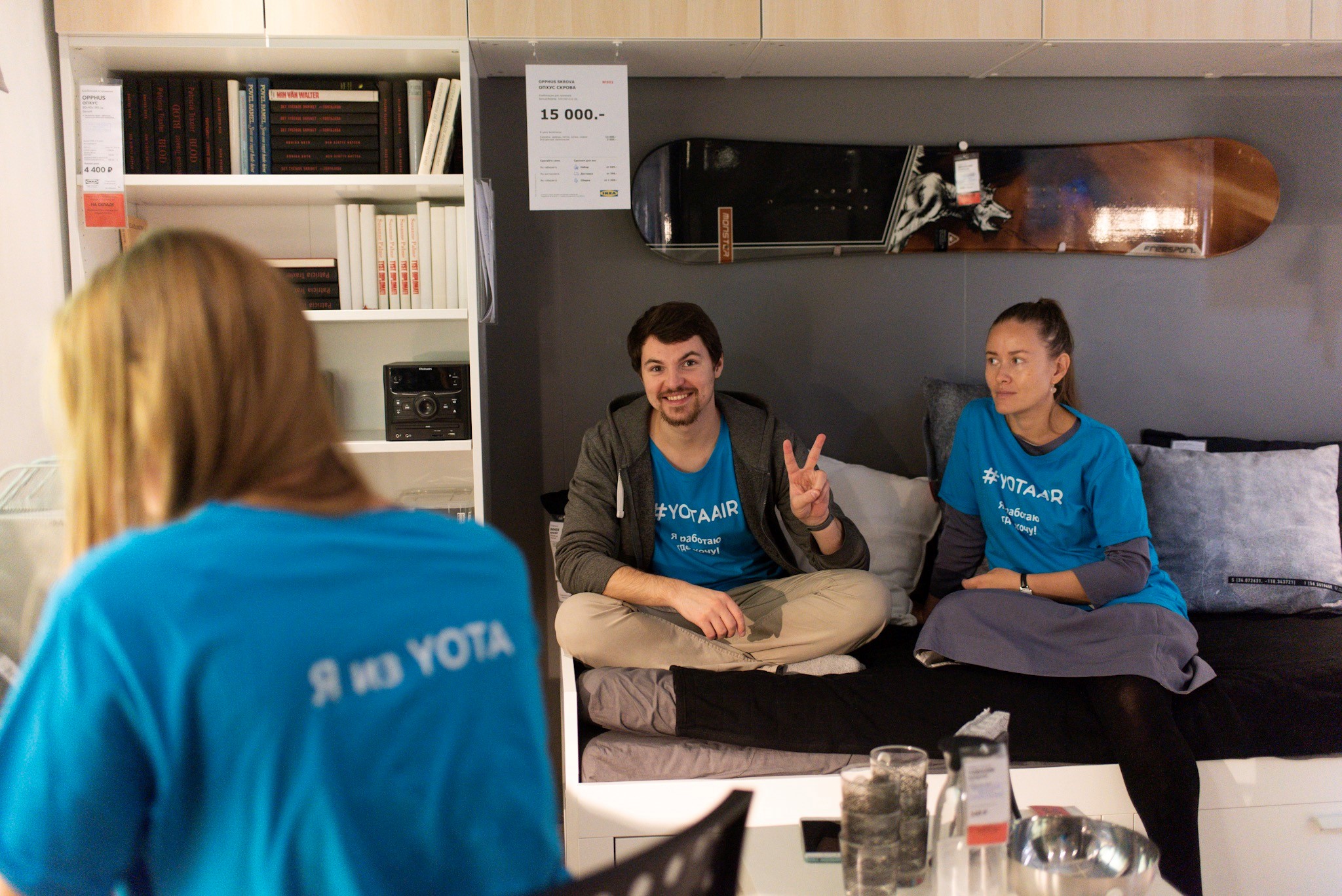 В Петербурге 12 сентября сотрудники Yota приехали поработать в ИКЕА-Дыбенко и IKEA-Парнас. В качестве рабочих мест они использовали торговые экспозиции.