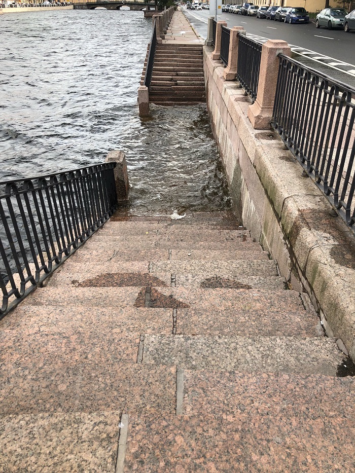 Из-за ветра в петербургских реках поднялся уровень воды.