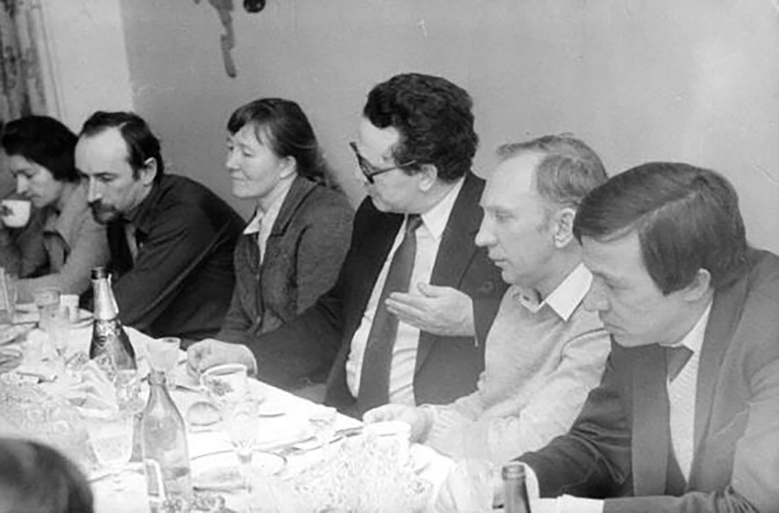 Разработчики фосфорорганических отравляющих веществ (слева направо) — старший научный сотрудник ГоСНИИОХТ Нелли Тарасова, будущий фигурант уголовного дела об убийстве с использованием «Новичка» Леонид Ринк, начальница аналитической лаборатории Тарасенко, директор ГоСНИИОХТ Виктор Петрунин, глава технологического отдела института Евгений Смирнов, руководитель группы исследователей и создатель ядов А-230 и А-242 Петр Кирпичев
